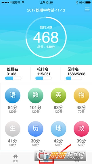 5、之后,点击底部【学情】菜单,就可以查看到各科的成绩,示例如图。