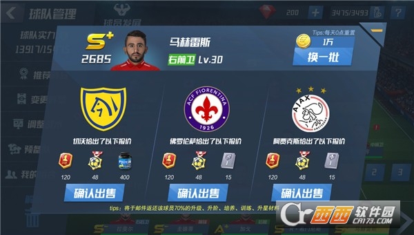 球员回收的话,游戏中不需要的球员可以在球员管理界面进行解雇获得转会基金。转会基金可以在转会市场兑换高评级的球员,所以游戏中多余的球员记得解雇兑换资源,总有一天你也能积少成多组一套纯S+阵容。