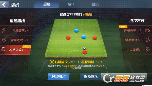 3、在战术方面对整体战力的加成是关键之一,越早升级就越能拉开差距。当然也不要关顾着修炼球员,战术的升级也是需要同步才能有效率。