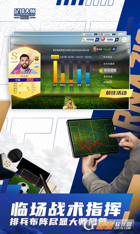 5000真实球员数据,媲美最真实全3D比赛,马赛回旋、蝎子摆尾,TIKI-TAKA、过顶直塞等绝妙动作都在这里。新老球星齐上阵,梅西、C罗、齐祖、枪王之王、外星人,组建你的梦幻阵容。这里不仅仅有球星,有激情,更有满满的足球回忆!