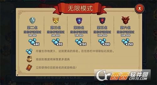 3、无限模式 无限模式玩法中会根据生存时间,发放相应排名宝石奖励。