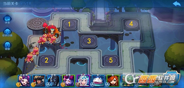 无尽回廊是以同场怪物不到20个为胜利条件的一种玩法,怪物都是从左上角出来,每一关的怪都是非常多。显然,关卡中使用群攻的英雄是非常必要的,那么具体的五个位置如何搭配英雄呢?