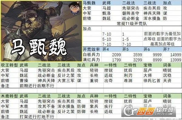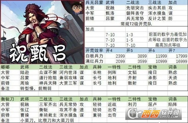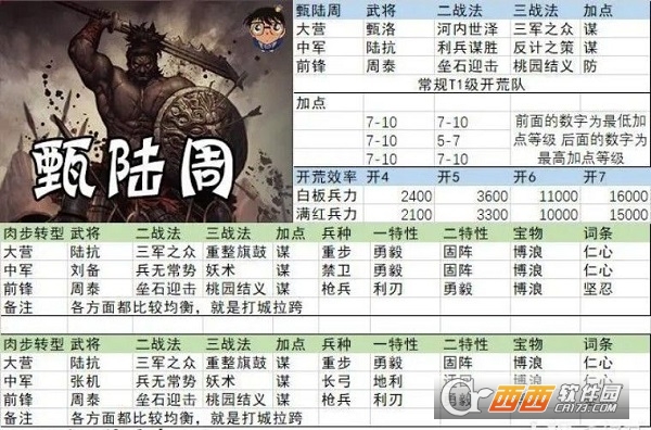 T1总共有三支队伍,马超就占了两只,剩下的一支自然就是我们的美人计-周泰,周泰自从被研发出来就稳稳占据t1宝座,不吃红,开荒稳等等优点稳固了其地位,但同时也有个致命缺点,打不了高级城和高级地