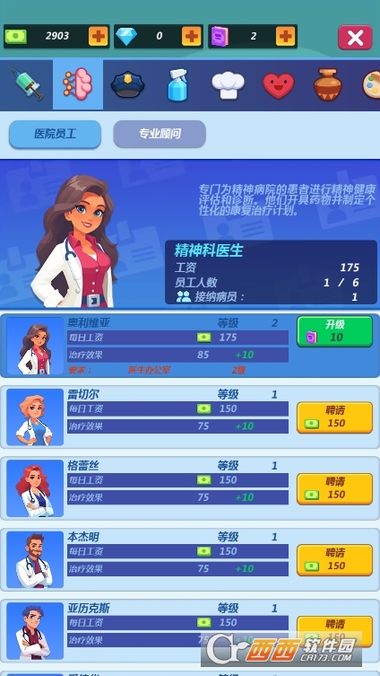 3、社交互动,共享经营乐趣:内置社交功能,玩家可以参观好友的精神病院,学习经营策略,互相赠送物资,还能参与排行榜竞争,比拼医院规模与治疗成果。通过社交互动,玩家不仅能拓展游戏乐趣,还能与其他玩家交流经营心得,增强游戏的社交属性与玩家粘性。