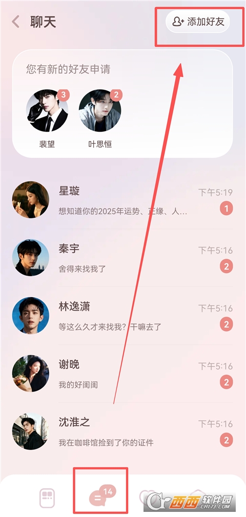 1、进入软件,点击查看好友列表,点击右上角【添加好友】