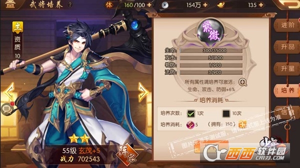 使用培养丹进行进阶,依次点亮七杀、破军、廉贞、贪狼、紫微、天府、武曲等将星,武将战力将会得到节节提升!