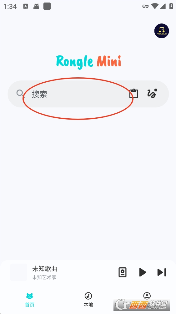 1、首先,请登录您的融乐music应用程序,轻触首页顶部的“搜索栏”。