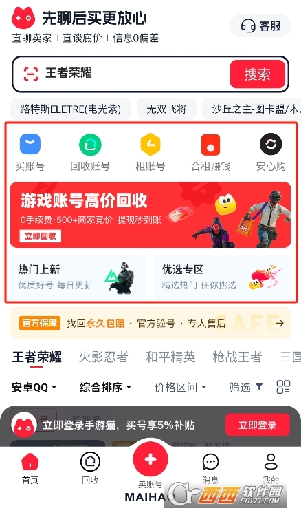 2、提供免费的账号交易平台,获得丰富的账号交易商品合集