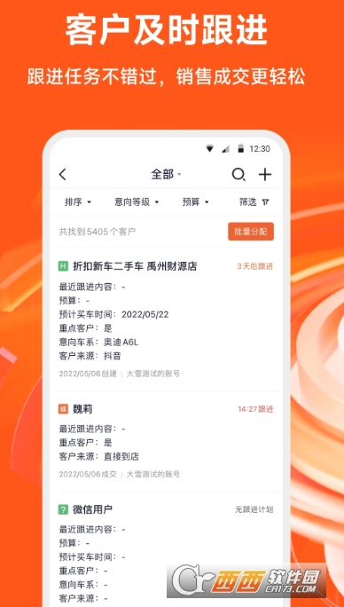 全流程数据化管理:覆盖车辆评估、采购、库存、销售及售后全生命周期,支持实时查看客户状态明细、转化率、成交数据,同时可统计员工业绩排行与客户结构,数据更新及时精准,帮助车商快速调整策略、精准把控经营节奏。