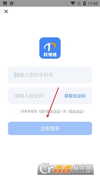 1、登录页有软件logo,需输入手机号、验证码并同意用户服务及隐私协议后立即登录。