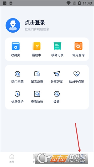 4、我的页提示点击登录同步刷题信息,有收藏夹、错题本等功能入口,底部是我的入口。