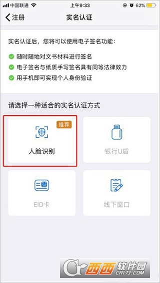 3、选择实名认证方式,我们选择人脸识别;