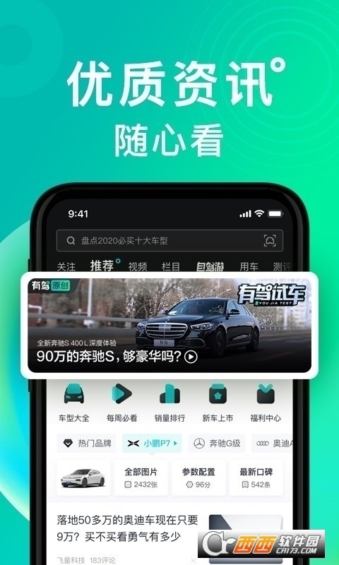 选车:有驾拥有超过6万款车型的高清大图、可视化参配、视频说明书等详尽信息,可以帮助用户全面了解车型信息。还有真实车主的口碑评价、成交价格,权威机构发布的安全碰撞报告、国际奖项,为用户提供真实可信的选购服务。另外,有驾还具备拍照识车、全景看车、VR逛店、大数据榜单等功能,可以帮助用户更加智能高效的选车。