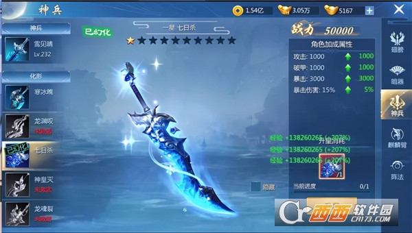 3、强化:花费铜钱对装备进行强化,提升装备属性。