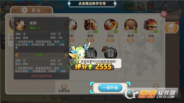 在职业技能选单中,玩家可以对单个技能进行单独升级,也可以选择“一键升级”同时对所有可提的升技能进行升级,当玩家等级达到新的阶段后,左边还会出现职业进阶的提示按键,此时点击进入完成任务即可来的新的职业等级。