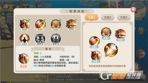 进入“技能配置”后,玩家可以在系统提供的三个方案中,对技能的排布进行编辑。根据自己游玩的习惯,或对战斗时的不同需求,将最适合的技能配置在技能栏中吧!