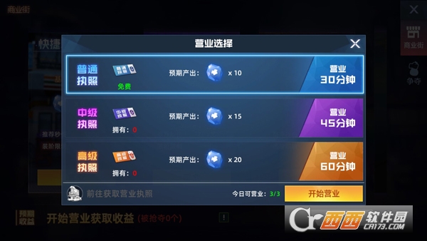 同时消耗的营业执照也有3个等级划分“普通、中级、高级”,玩家可通过购买或副本产出获得中级和高级执照。