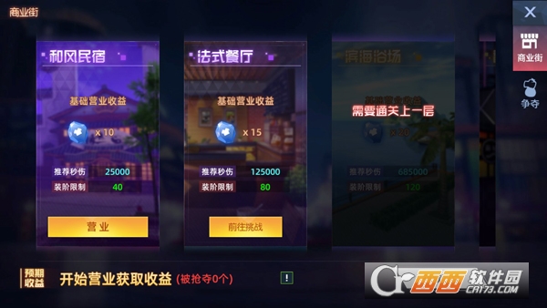 随着玩家能力越大,挑战更高级的商业街,说产生的收益也会更高。
