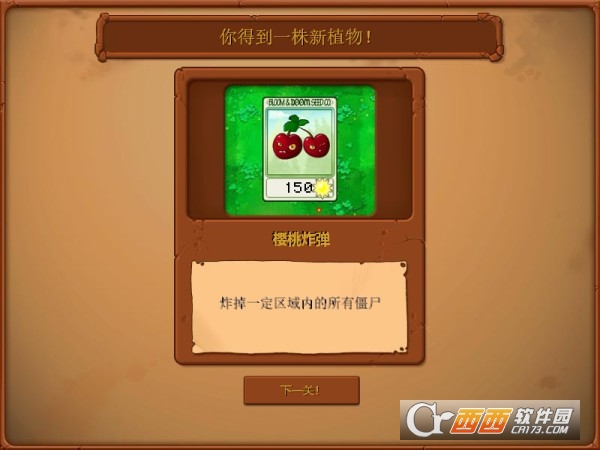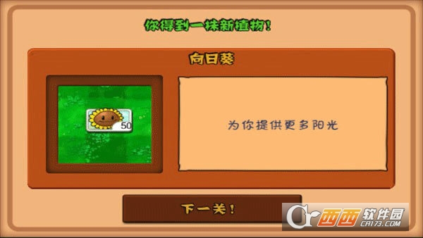 5、成功通过关卡之后,将会获得新植物,以此进入下一关;