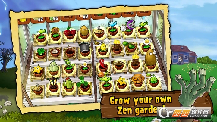 ● 通过「疯狂戴夫店」购买特殊植物和工具,以任何你能想象得到的方式干掉僵尸。