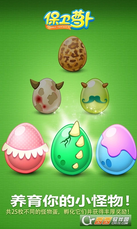 3、怪物养成系统,把收集来的怪物蛋孵化成萌死人的怪物宝宝,把它们养大后将会解锁隐藏地图!