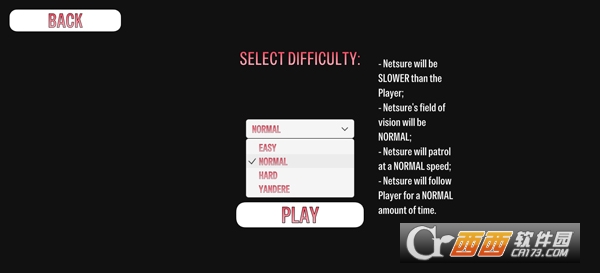 2、点击选择游戏难度,按需选择简单、正常、困难、病娇不同难度