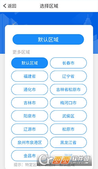 2、如果区域内没有自己所属地市,请选择“默认区域”。