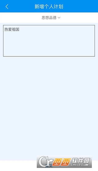 3、也可以自主制定个人的成长计划,点击【新增计划】,学生分别针对思想品德、学业水平、身心健康、艺术素养、社会实践五方面的内容分别制定计划,完成后提交。