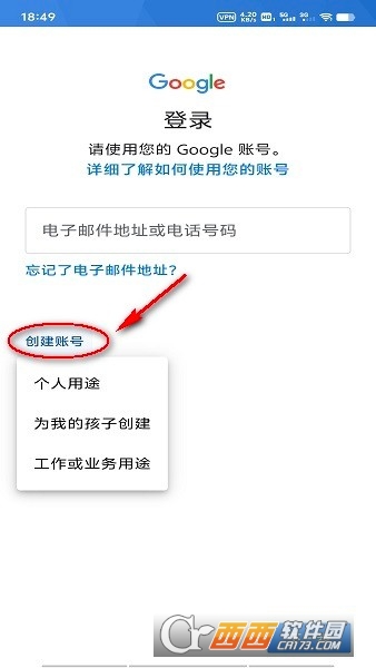 有账号的用户可以直接登录,新用户的话,就点击“创建在账号”,用途可以随便选择哪个,点击“下一步”;