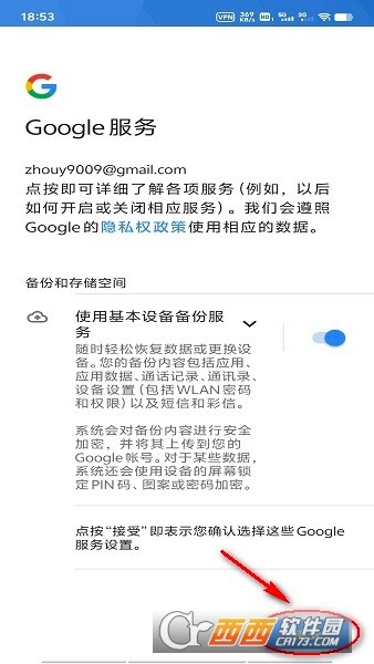 最后就是一些权限,备份和存储空间中的选项都是模式开启,直接点击“接受”就行了;