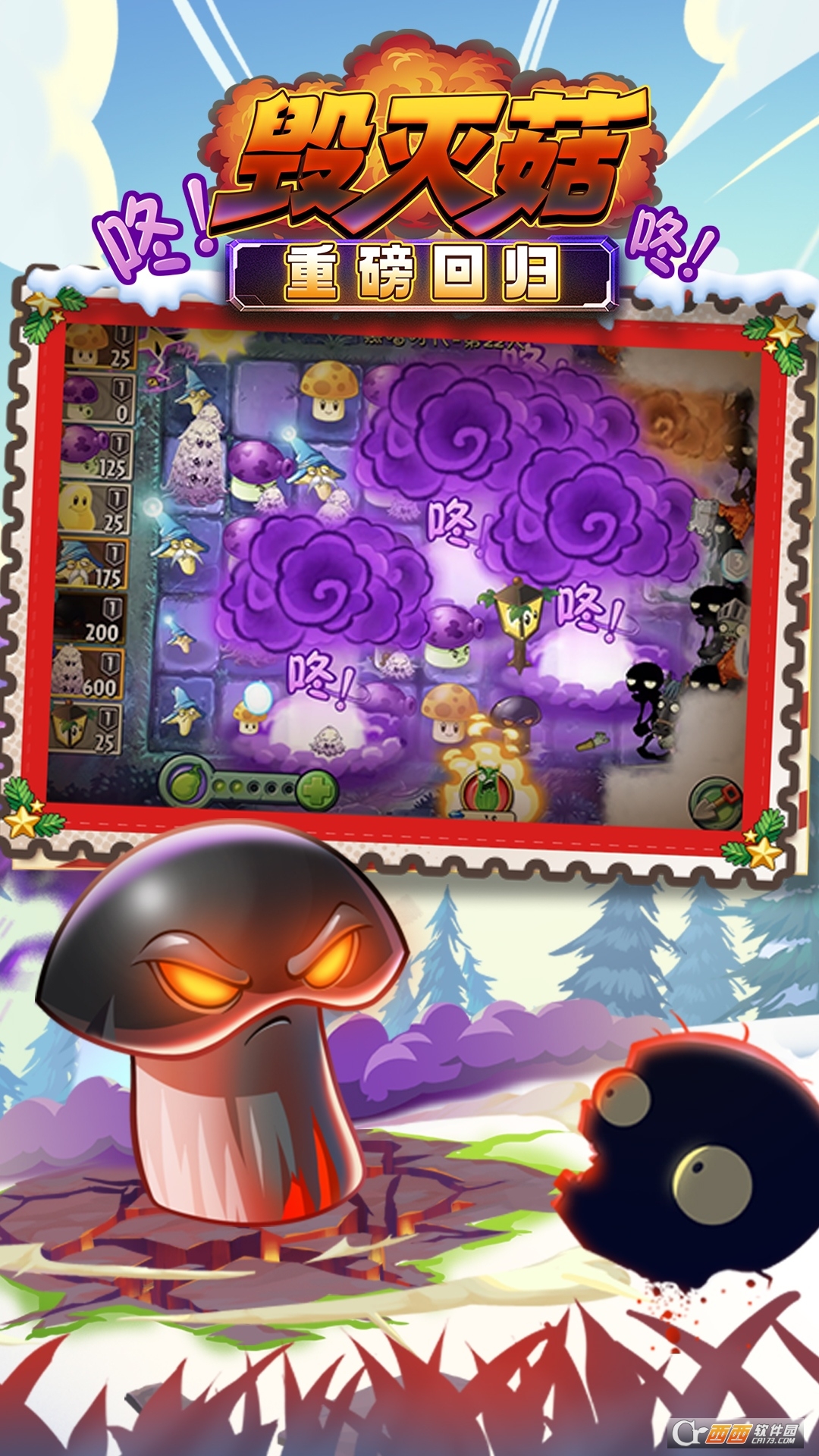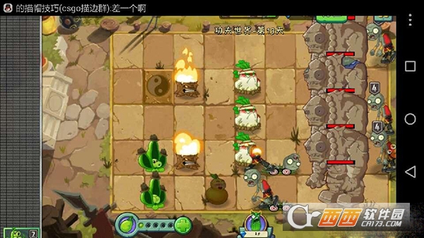 把第一波僵尸打掉之后基本上就稳了,然后就是来什么就种什么了。在第一个巨人要出来时,如果他脚下有一个地刺或者刚好点了一下火葫芦,你会看见它刚解脱时便会死掉。