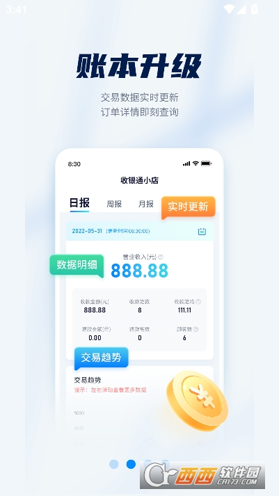 多维度经营数据管理:除了交易流水,还能管理商品信息,支持商品录入、分类、库存编辑等,同时自动生成日 / 周 / 月财务报表,方便商户将收银、商品、财务数据统筹管理,报表支持自定义筛选维度,数据导出格式兼容常用办公软件。