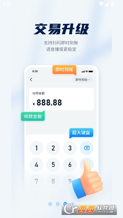 全场景硬件适配:并非仅依赖手机端操作,还可搭配智能 POS 机、扫码盒子、云音箱等多种硬件,不管是门店固定收银、流动摆摊,还是餐饮门店的扫码点餐,都能适配对应的经营场景,硬件连接简单稳定,无需复杂调试即可快速启用。