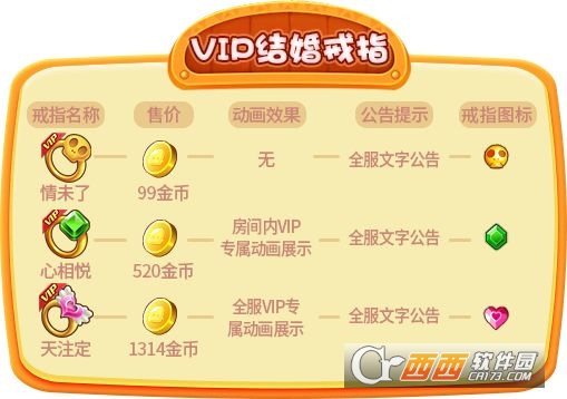 5、只有结婚双方都是VIP才可以使用VIP戒指结婚
