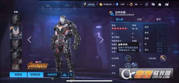 战争机器属于能量型英雄,是我们优先考虑培养的角色。与钢铁侠相比,小编觉得战争机器更具优势。其第一个技能冲击,不仅攻击速度快,还附带眩晕效果,与第二个技能机枪扫射配合堪称完美,清理怪物的效率极高,技能冷却时间(CD)也很短。要是培养得好,在PK中甚至能战胜黑寡妇。截至目前,战争机器没有明显的致命弱点,越级打怪也不在话下,是非常值得强力培养至满级的英雄。