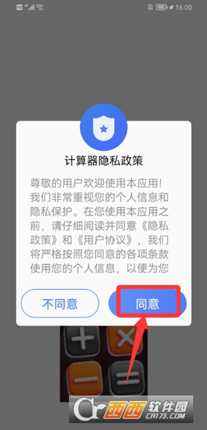 1、首次启动需同意隐私政策,随后进入计算器主界面。