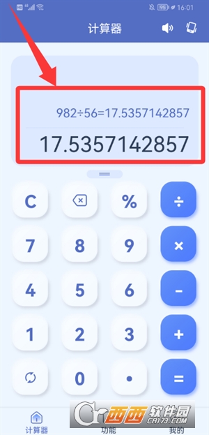 3、点击等号键后,即可在上方显示计算结果。