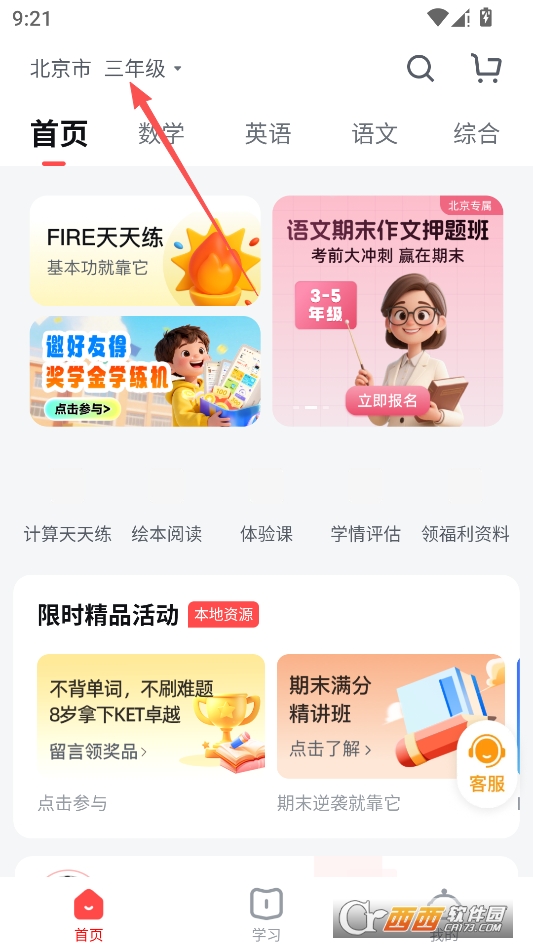 即可进入年级切换界面