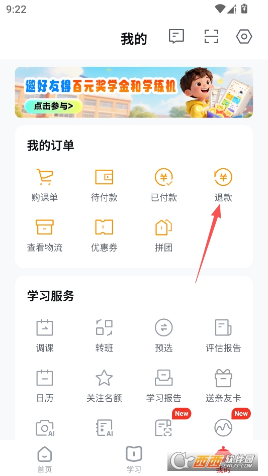 即可进入退款界面选择要退款的课程