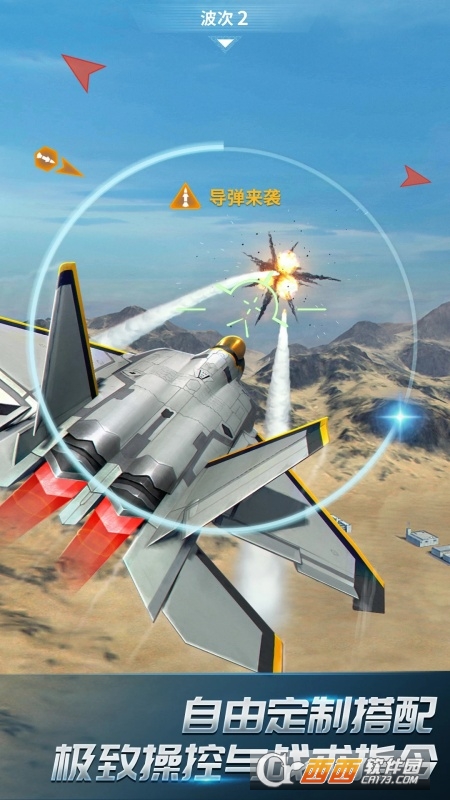 颜值即是战斗力,个性化配置酷炫战机涂装!全面打造战机专属引擎、装甲、机翼与雷达装备,升级航电火控等科技系统,使战机综合性能达到巅峰水平!自由定制键位操控,自由选择陀螺仪传感器和虚拟摇杆操作,带您体验身临其境的360度自由飞行。执行眼镜蛇、高低YOYO或滚桶式战术飞行特技配合干扰弹释放,有效躲避敌机的攻击!
