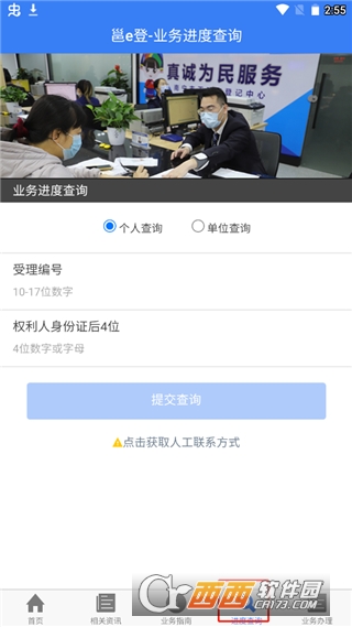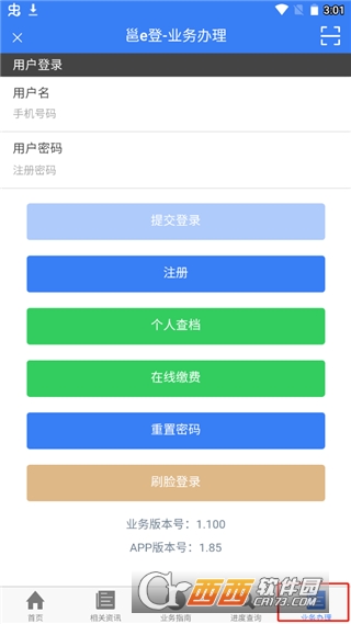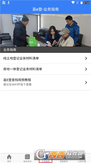 1、打开软件,进入首页,软件为用户提供了业务办理、进度查询、查档服务、在线缴费等等功能;