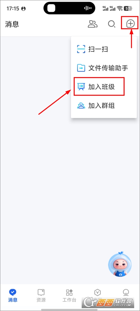 2、接着点击右上角+号,选择“加入班级”;
