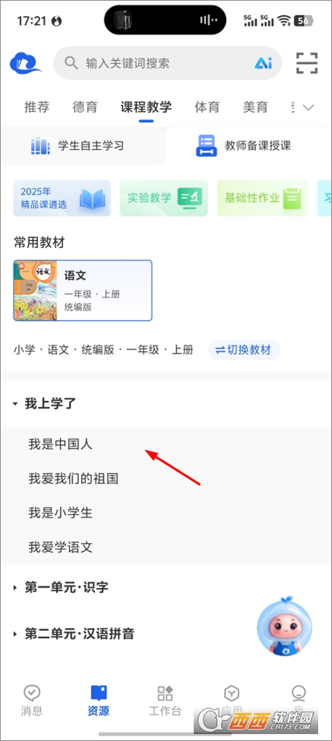 1、首先打开app,进入后点击下方资源,接着找到要下载的课件;