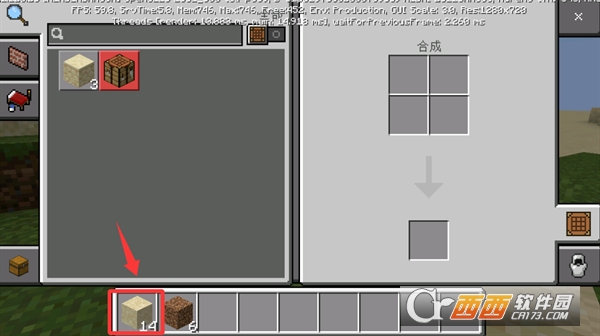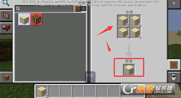 2、放入刚刚捡回来的方块进行合成会得到砂岩。