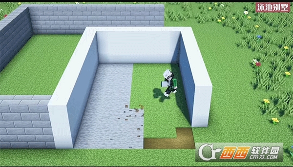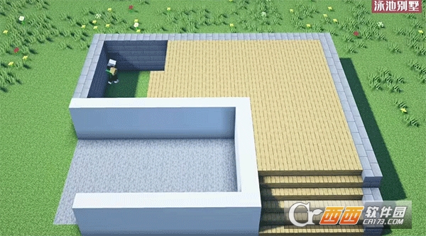 3、现在用白色混凝土制作一个游泳池框架。