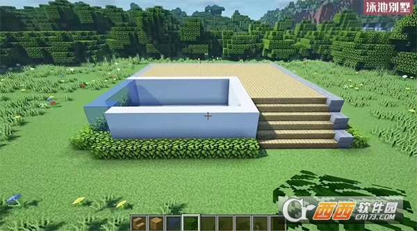 6、在用橡木板装饰游泳池。