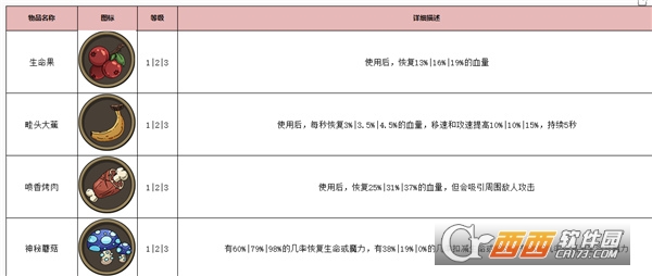 以上4种是具有回复效果的道具哦~探险家受伤的时候请认准以上道具进行使用!