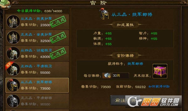 首先是功勋,每天14000点,官职提升1级战力增长100多点,而且基本不用花费什么,每天记得刷满,尤其是前几天刷满一天可以升好几级官职,就是几百点的战力。