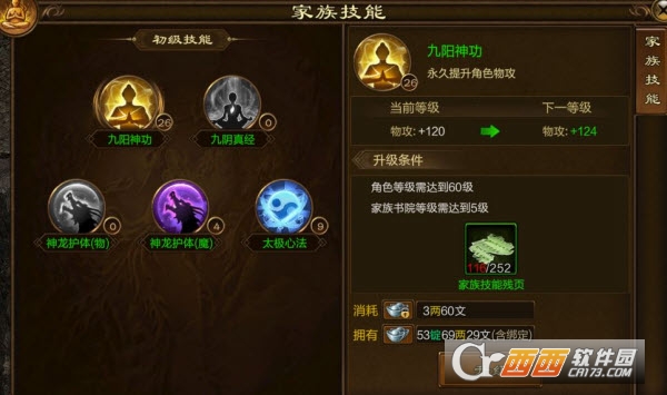签到和家族商城兑换可以兑换到大量的书页,优先提升对应的攻击和防御可以获得大量的战力和实力加成,需要注意的是53级和61级技能书尽量前期可以用拉骆驼卖令牌的银子去买,前期书多而且便宜,贡献度省下来升这个技能修炼是可以涨很多战力的。另外家族技能要诀绑金充足的月卡玩家前几周一定要买光,第一周会发现用不了那么多,也要先买着,后面会不够用。非月卡玩家绑金也要尽量留着买这个而不要去签到和买药水。