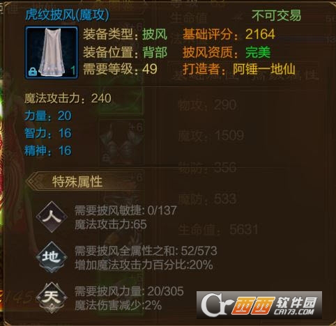 550功勋换一个,初始就可以加1000战力,非常强力,前期第一周赢三场家族战,或者赢2场自己是贡献最高的,抢最高可以去用战车拿宝石交宝石,占占旗子,都可以第一周换到,没有换到也不用着急,慢慢来就好,一般换自己对应攻击的,换好之后用披风注灵石充灵,充满消耗白披风进阶成蓝色,后面也是慢慢进阶。需要注意的是换的出来开启的时候会随机各种披风的属性,换到好的在注灵比较好,虎纹披风首先看资质:普通、良好、优秀、完美、无双 五种资质;初期获得资质不错的披风就可以先培养起来,后期开出更好的也可以拿之前的披风当狗粮。然后看属性,力量,智力,精神,敏捷,体质五种属性,随机会有3种,例如自己是战士,那么智力属性就没什么用只加微量的血,尽量不要,其他职业同理。然后看特殊属性和属性的对应,比如下面的图,“人属性”需要137点敏捷才能激活,但是披风没有敏捷属性,那么它就永远不会生效,这一条属性就是浪费的。确认特殊属性的可以被激活再挑选特殊属性种类,增加和自己对应攻击百分之20的,重击和神圣一击的是首选,其余的有追求单向减伤百分比的也可以挑选。这么多条件同时满足不大现实,大家也不要过分追求完美,重点看资质,其他的差不多就可以了,十全十美的披风很难获得。换出来不好的披风千万不要分解,留着进阶披风使用,披风进阶的时候可以用上。